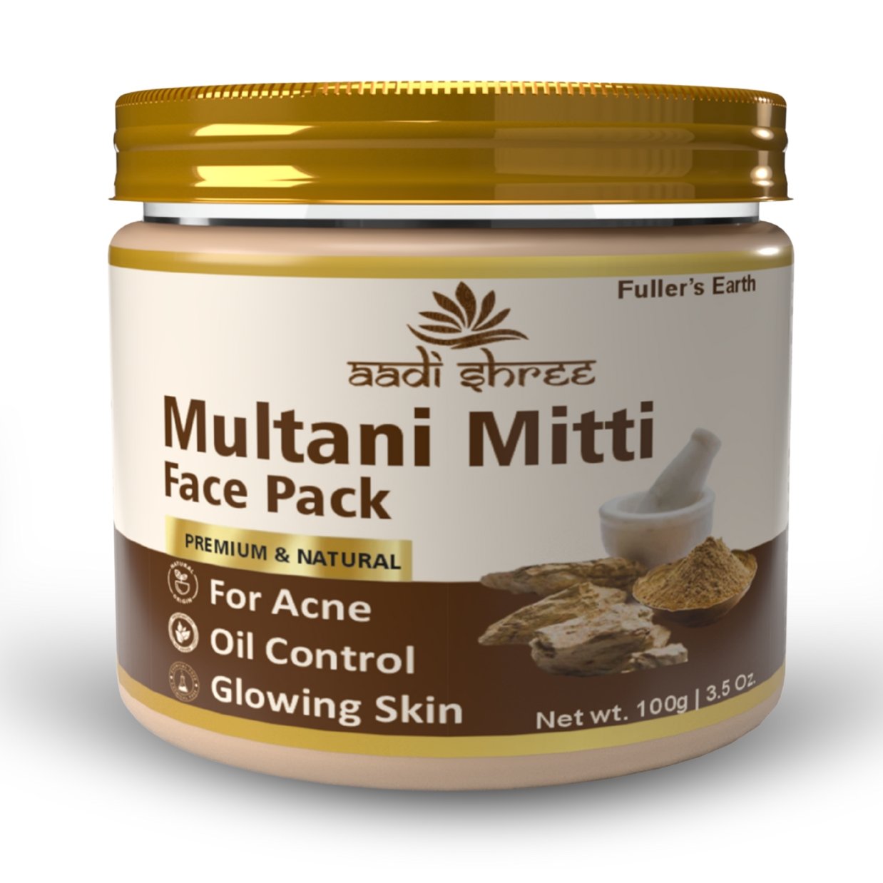 Looking for a natural skincare and haircare solution? Try Aadi Shree Multani Mitti Powder, made from 100% pure and finely ground Fuller’s Earth. Packed with essential minerals, this natural beauty remedy has been trusted for centuries to remove tan, brighten skin, control excess oil, fight acne, and strengthen hair.